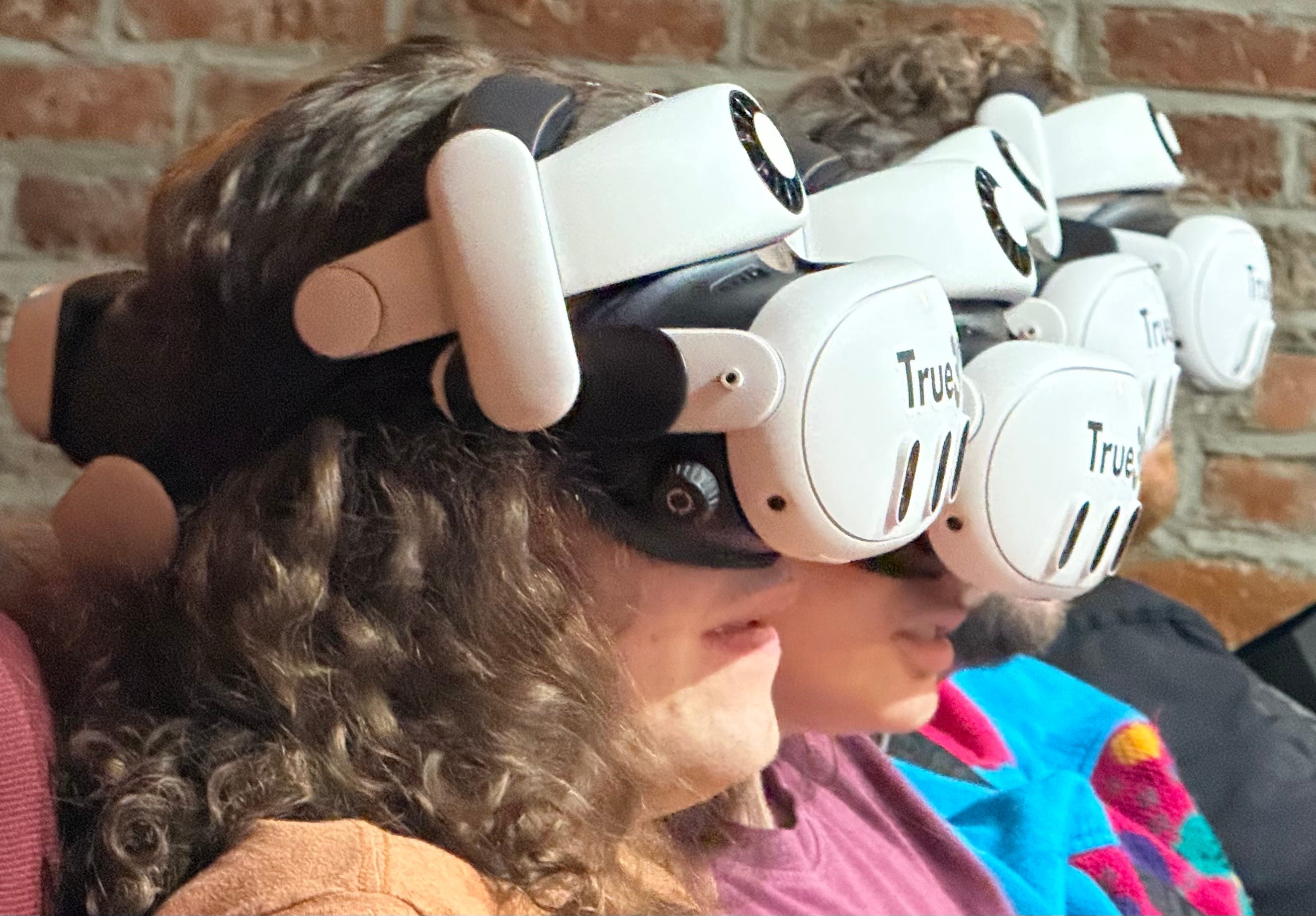 True3D offered the standard version of the film as well as one that promised a countdown to each of the jump scares. There was also a scarier version that was simply teased as “more immersive.” I picked that one and noticed the film’s frame change its aspect ratio and size a couple times. Sound came through the theater speakers and I found myself turning the volume down on the headset to avoid any surprises. In retrospect, I think that effectively outsmarted True3D’s attempt to increase my immersion and fear with surprises through the headset’s audio channels. Another nice touch offered here was that the movie also played in sync on a projector at the front of the theater, allowing people to take their headset off in the case of bugs, discomfort, or to go to the bathroom and still keep an eye on the movie as it plays in sync with everyone else in the theater.