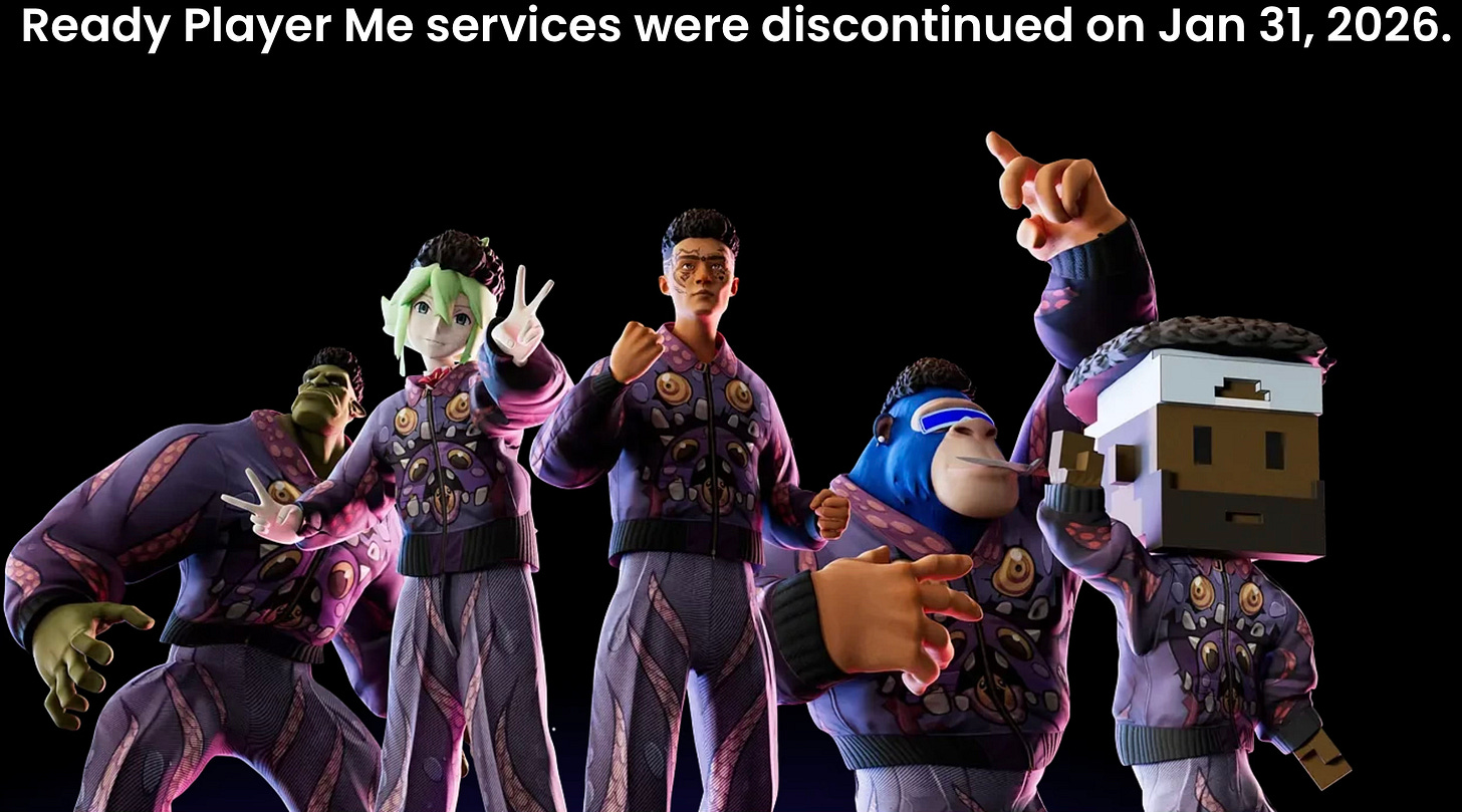 The avatar service ReadyPlayerMe shut down at the end of last month.